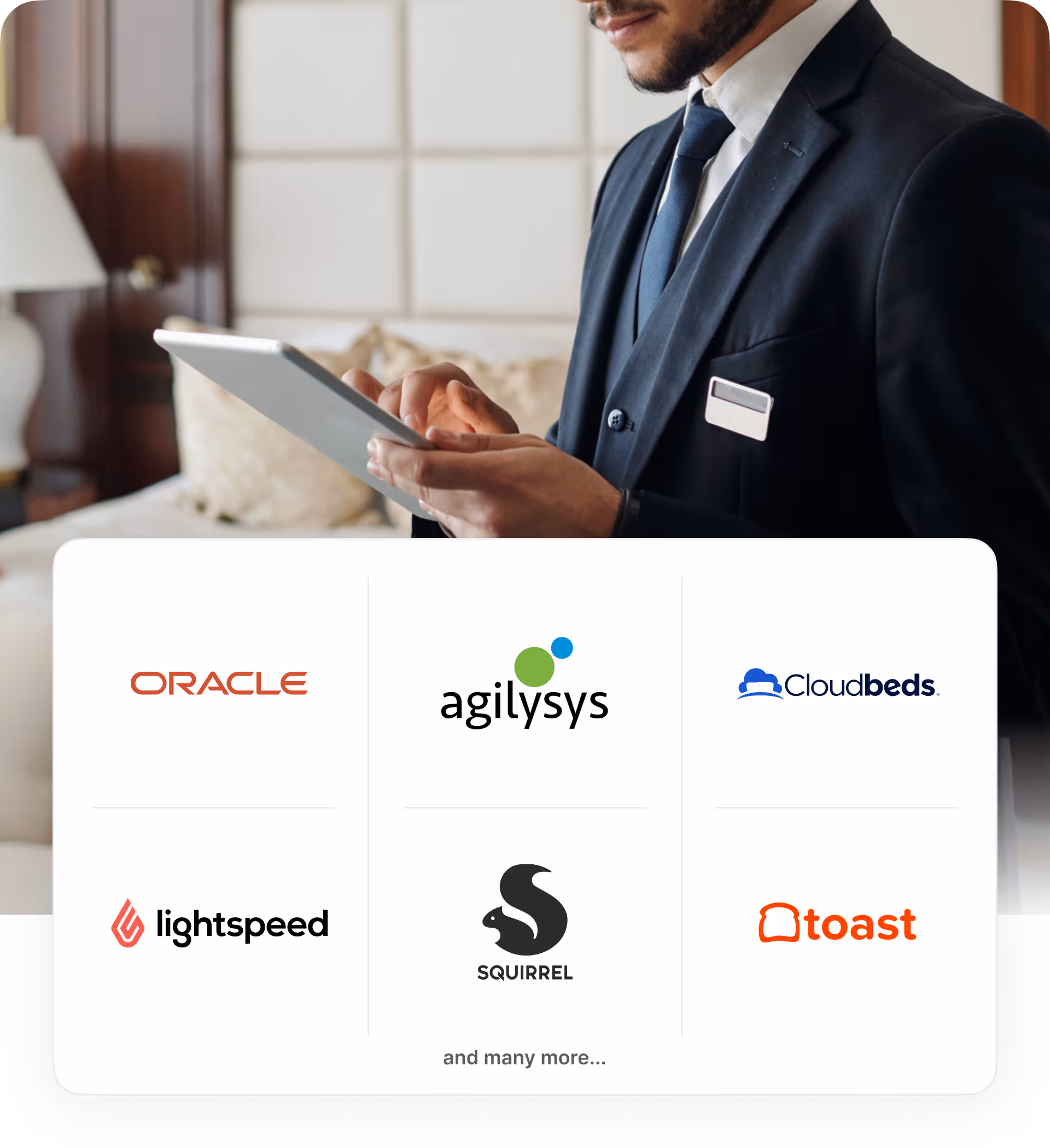PMS: Opera/Oracle Hospitality, Agilysis (e.g. InfoGenesis POS + PMS integration), Cloudbeds and more